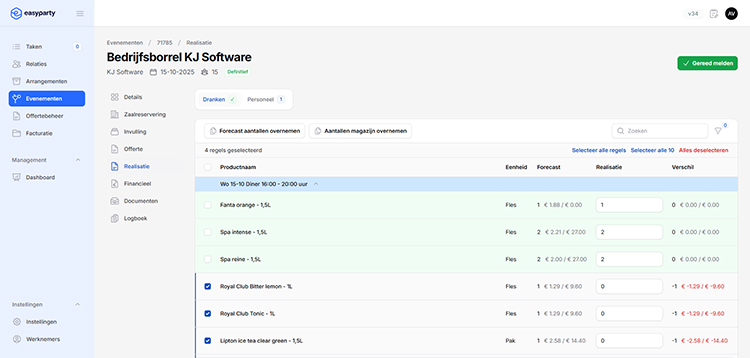 Zeker. EasyParty registreert automatisch wat er verbruikt wordt en helpt tekorten of verspilling voorkomen. Ook kun je leveranciers koppelen en bestellingen rechtstreeks vanuit het systeem doen.